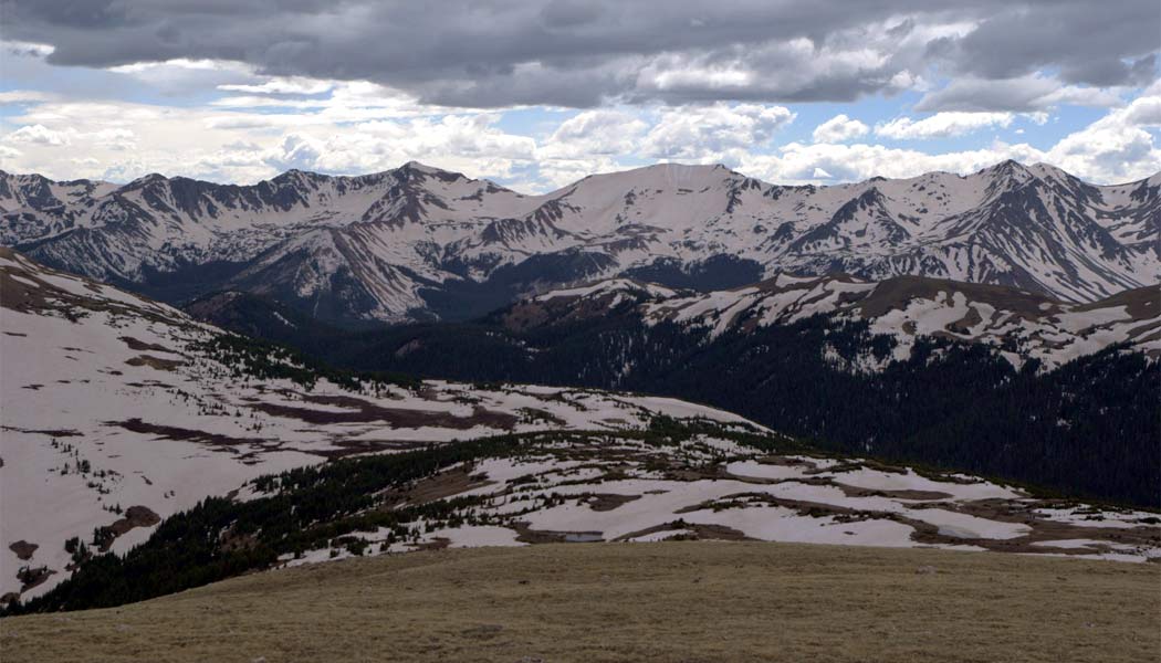The best views on Trail Ridge Road will be on the driver’s side, looking south and west. The Big Thompson River forms the valley in between you and the next set of mountains.